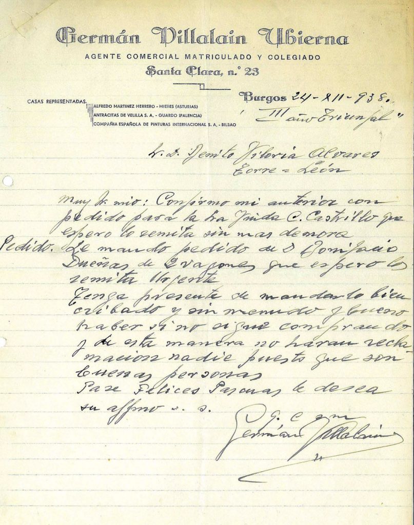 Correspondencia comercial entre Germán Villalain Ubierna y Benito Viloria. Años 1938 y 1941. Tomo 6. Doc 6. 14 páginasCorrespondencia comercial entre Germán Villalain Ubierna y Benito Viloria. Años 1938 y 1941. Tomo 6. Doc 6. 14 páginasPor Fundación Cultura Minera21 abril, 2021Documentos, Fundación Cultura Minera
