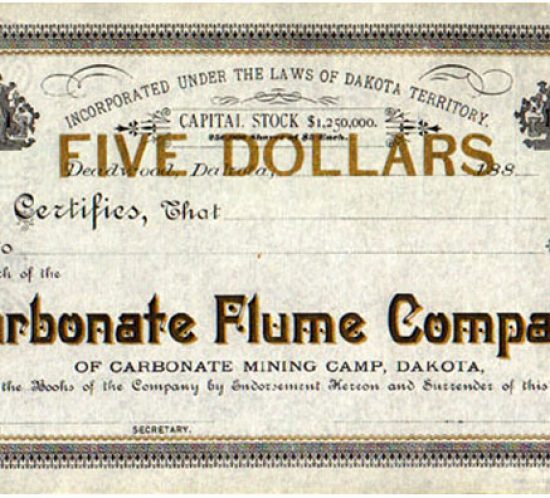 Acción minera de la Carbonate Flumen Company. Deadwood, Dakota de Sur, USA. Decada de los 80 del siglo XIX. In Acciones mineras / Estados Unidos