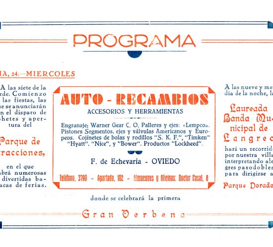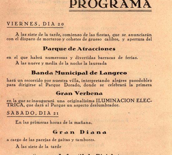 Programa Fiestas de Santiago. 6 páginas . Año 1935